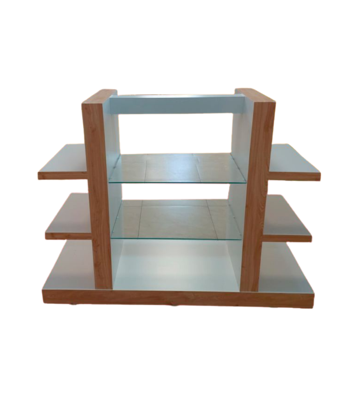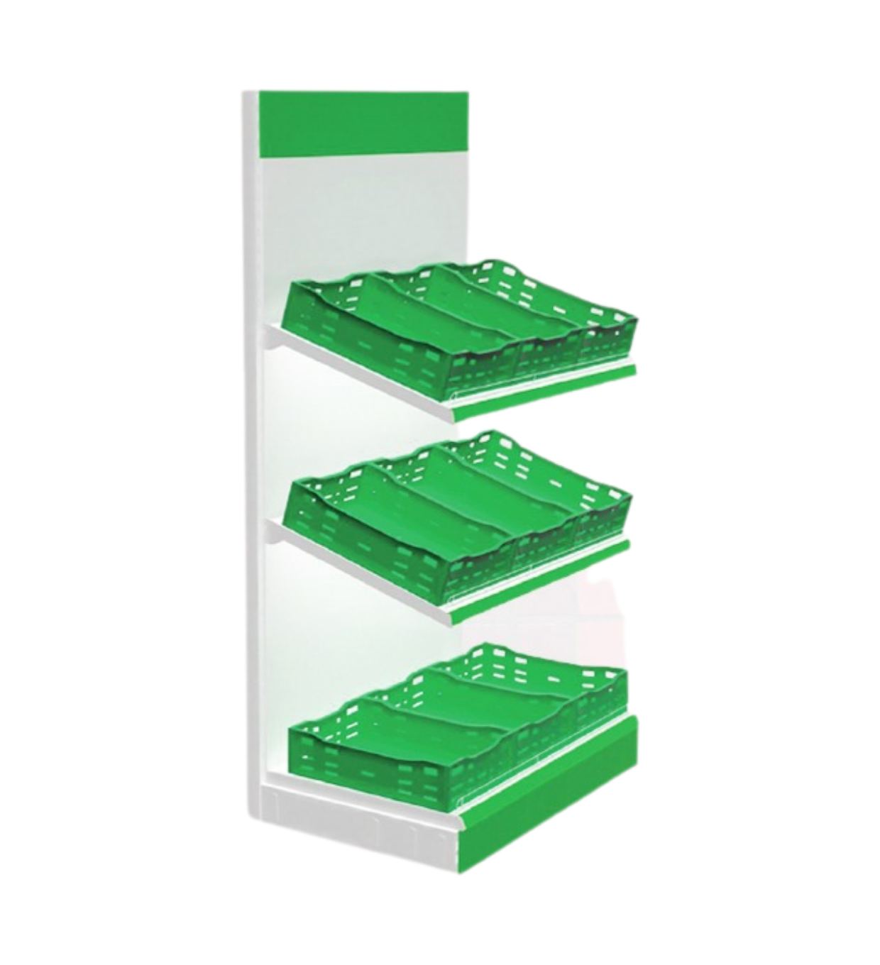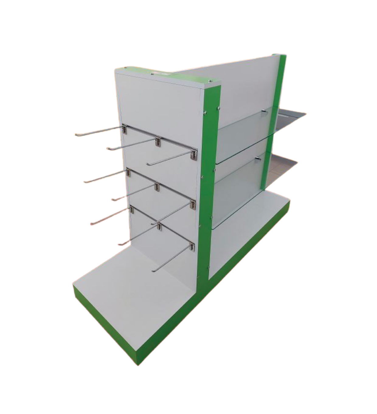 Temos prateleiras metálicas, expositores, ilhas centrais e balcões de atendimento para organização e exposição de produtos no ponto de venda.