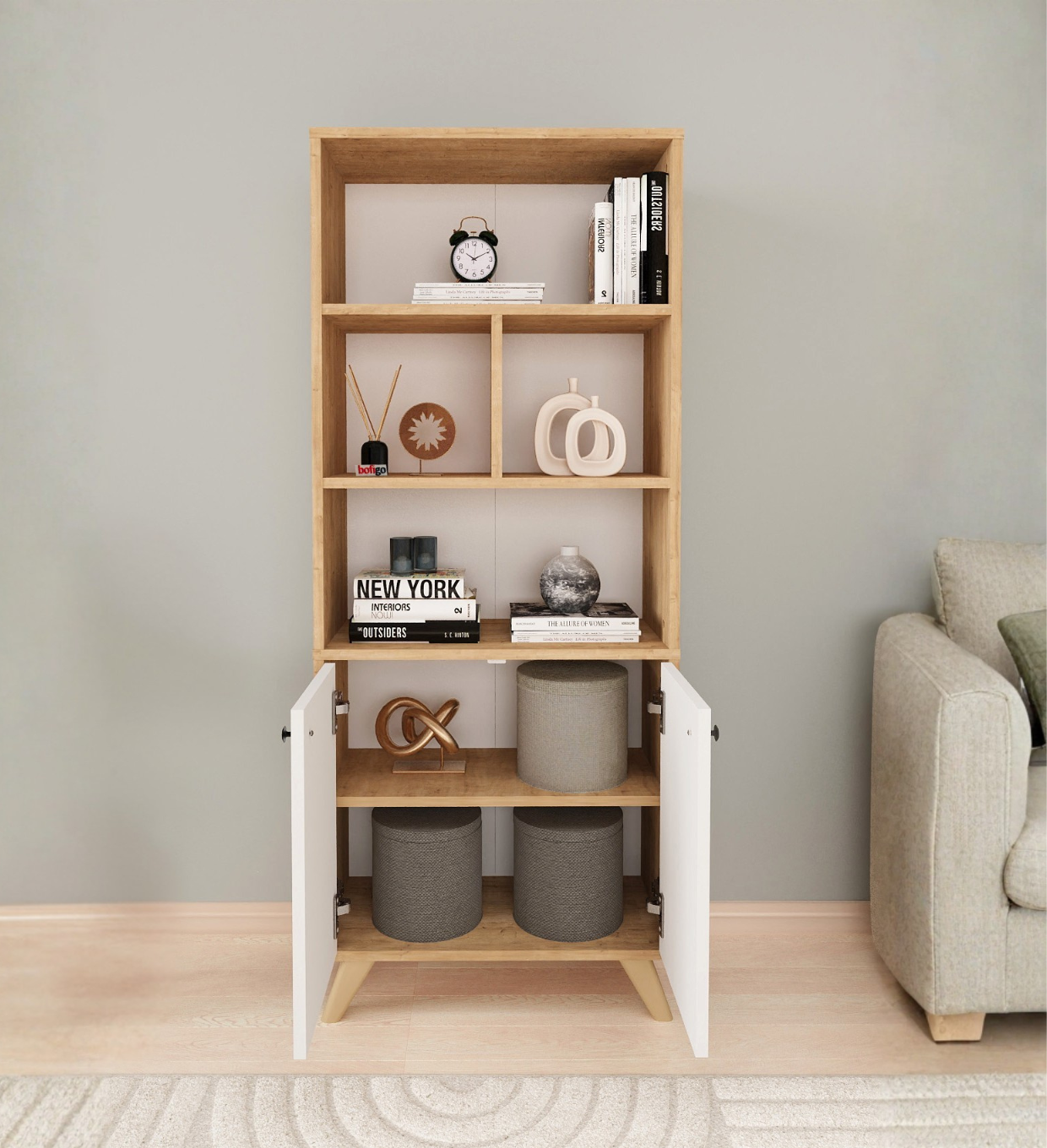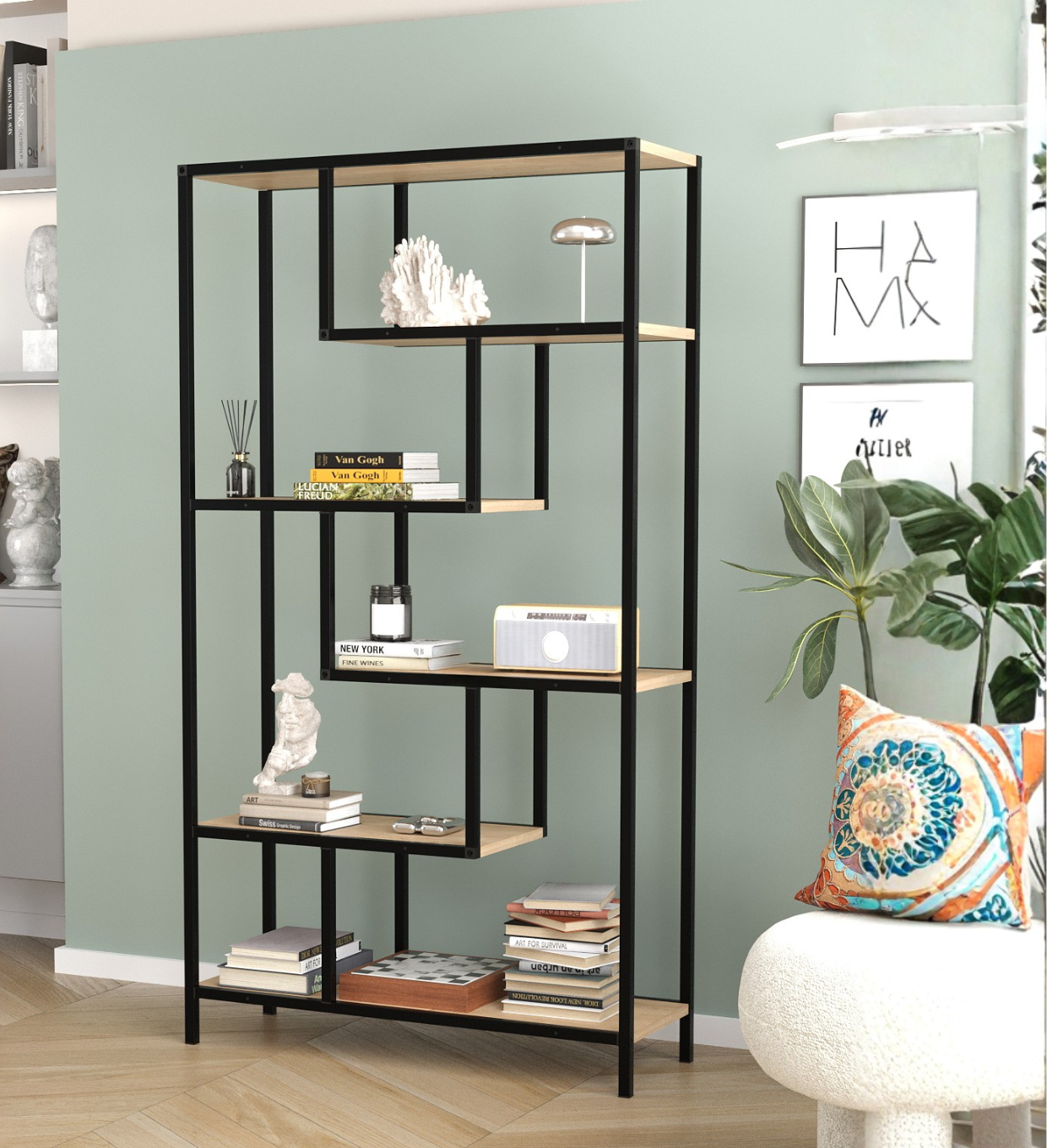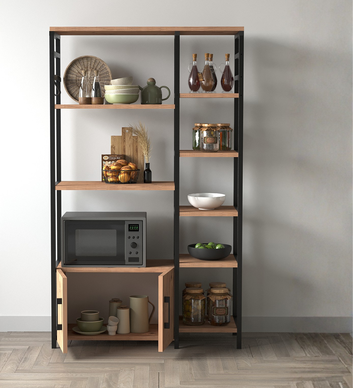 Temos prateleiras metálicas, expositores, ilhas centrais e balcões de atendimento para organização e exposição de produtos no ponto de venda.